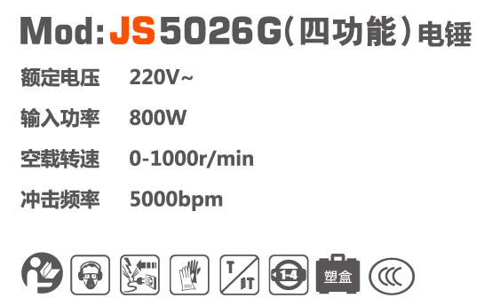 产品型号:JS5026G四功能电锤